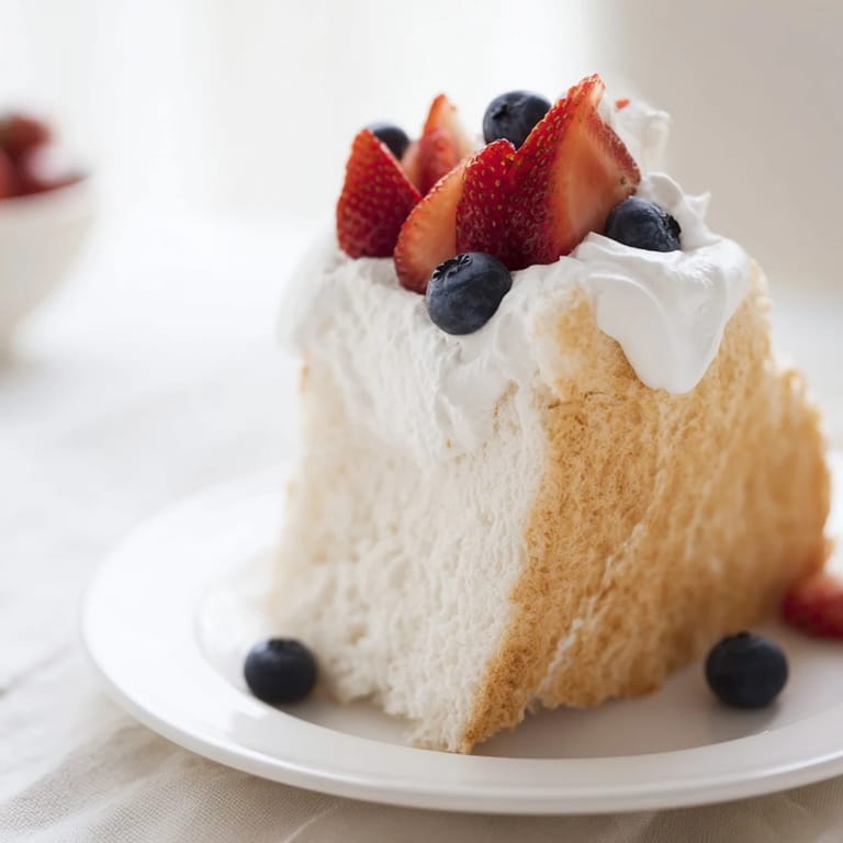 Angel food cake exists in this rare category of desserts that feel fancy and light but don't require cream, butter, or chocolate—it's pure, almost innocent. It's the cake you serve when someone's recovering from an illness, when you want something refreshing on a hot day, or when you want to prove to yourself that you can do something technically difficult. There's no room to hide behind rich flavors; the cake itself has to shine. That's what makes it challenging and rewarding in equal measure.