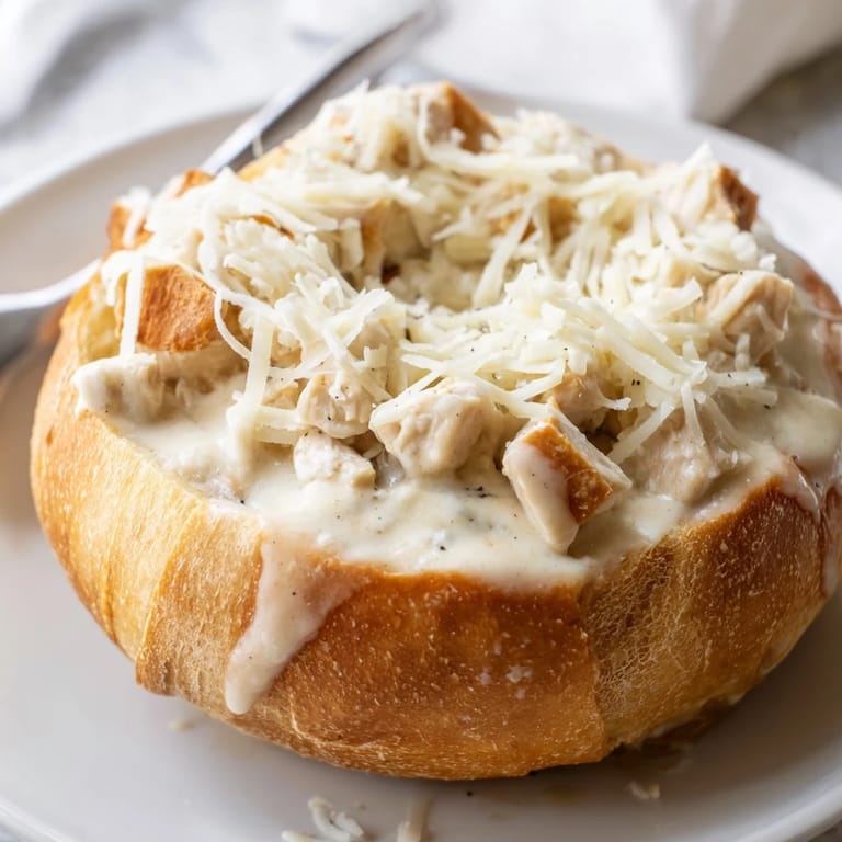 Save My neighbor handed me a loaf of crusty bread one Saturday morning, still warm from the bakery, and said, Try something ridiculous with it. I had leftover chicken and cream in the fridge, and that challenge turned into one of the messiest, most satisfying dinners I've ever made. The bread soaked up every bit of that Alfredo sauce, turning golden and crispy on the edges while staying soft inside. Everyone fought over the last bowl, and I knew I'd stumbled onto something worth repeating. It's indulgent, yes, but sometimes that's exactly what dinner should be.