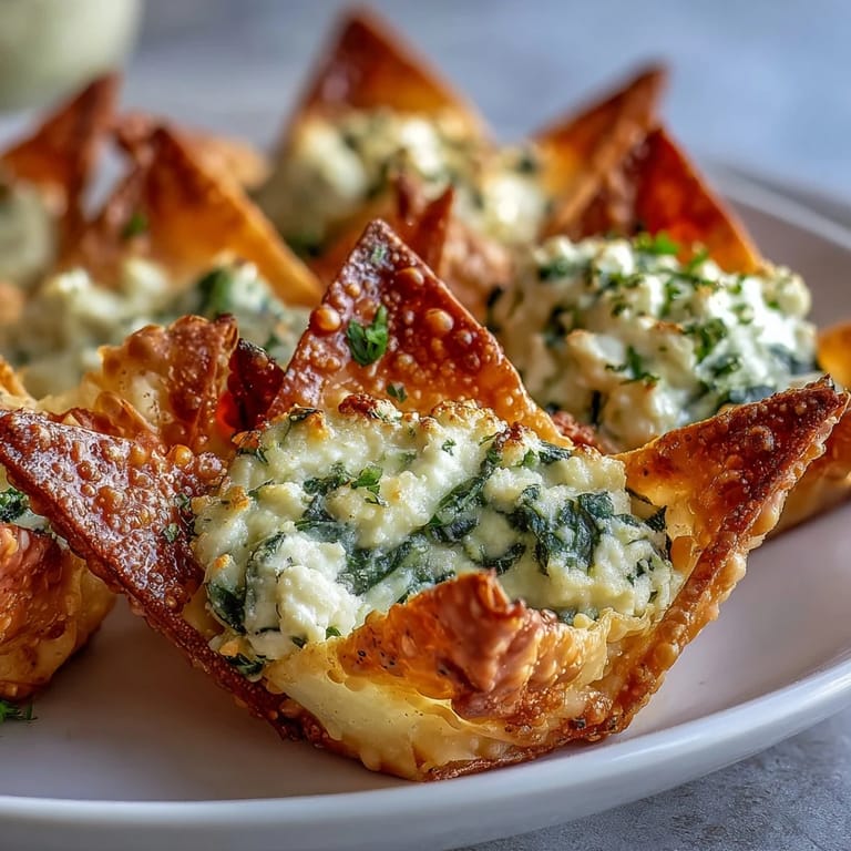 Save My neighbor showed up at my door one evening with a tray of something golden and steaming, barely wrapped in foil. She'd been experimenting with leftover wontons and a bag of spinach that was about to turn, and what she handed me was so good I stood there eating three before I even said thank you. The edges were shatteringly crisp, the filling warm and tangy, and I knew immediately I had to learn how to make them myself.