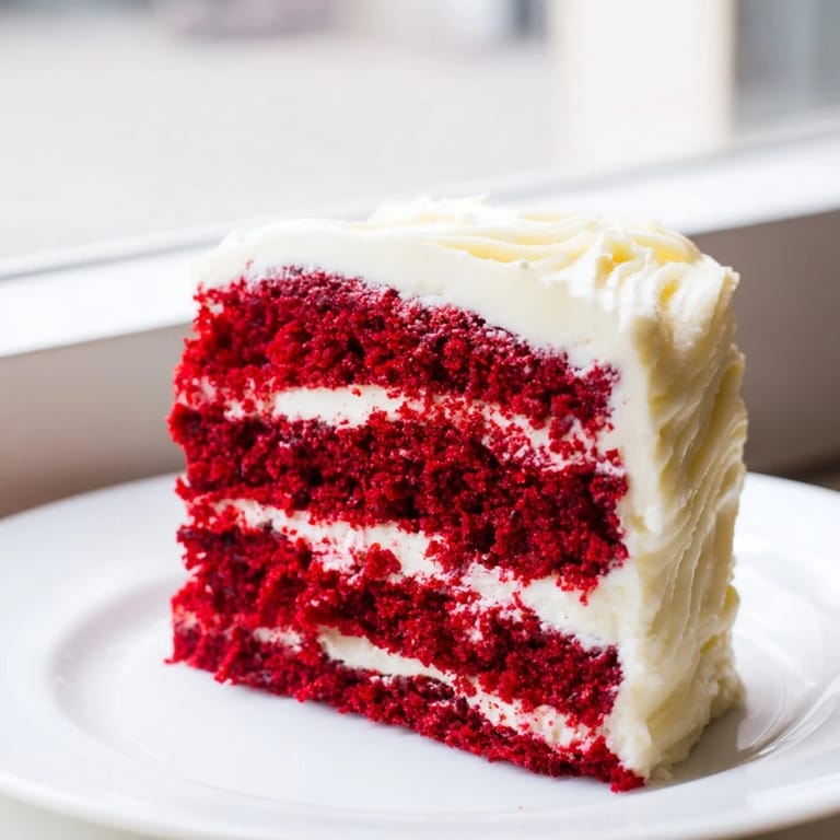 Save The first slice I ever cut into a red velvet cake was at my aunt's birthday dinner, and I remember thinking it looked almost too pretty to eat. The deep crimson layers against that cloud of white frosting felt like something from a bakery window, not a home kitchen. But one bite changed everything: the soft crumb, the subtle cocoa, the tangy sweetness of the cream cheese. I went home that night determined to recreate it, and after a few lopsided attempts, I finally nailed it.