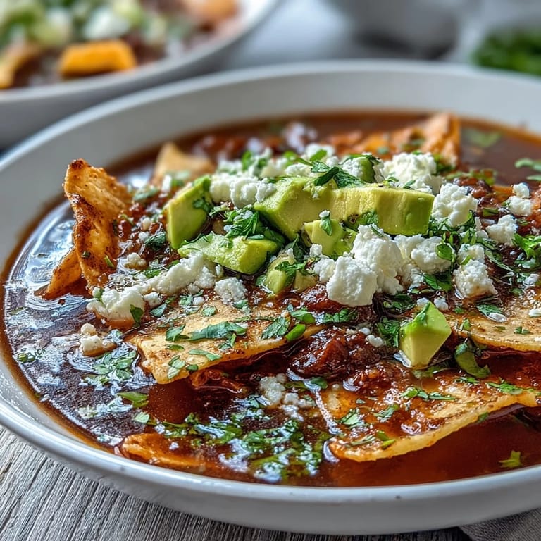 Save My neighbor Maria taught me to make sopa azteca on a Saturday afternoon when smoke from her kitchen drew me over with curiosity. She stood at her stove stirring chiles into a pot, the kitchen filling with this deep, almost smoky perfume that made everything feel ancient and alive at once. When she poured that ruby-colored broth over the crispy tortilla strips, it was like watching something sacred happen in a regular kitchen. The way the cheese melted into it, how the avocado floated on top—I understood immediately why this soup had survived centuries.