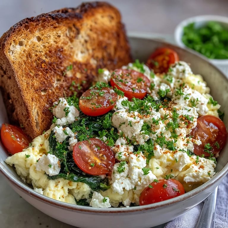 Save My kitchen smells like toasted bread and olive oil on mornings when I make this bowl, and honestly, it's become my favorite way to start the day. There's something about the combination of warm eggs, wilted spinach, and tangy feta that just feels right, especially when you're still half-asleep but craving something substantial. A friend once told me she'd been eating the same cereal for years until she tried this, and now it's her go-to when she wants to feel like she's actually taking care of herself. It's not fancy or complicated, but it tastes like you put in effort.